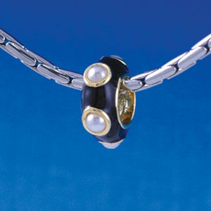 B1314 tlf - 5 Pearls on Black - Gold Plated Large Hole Bead (6 per package)