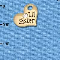 C6616 tlf - Large Lil Sister Heart with Clear Crystal - Goldtone Plated Charm (2 per package)